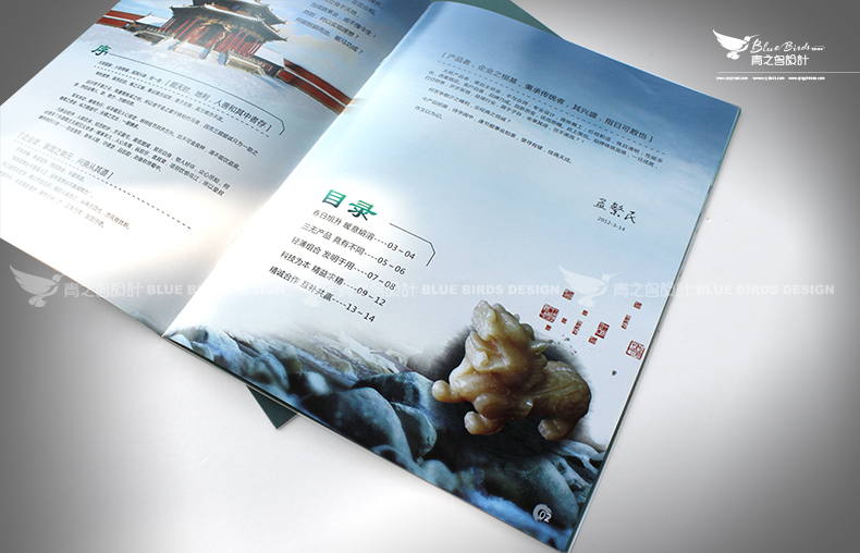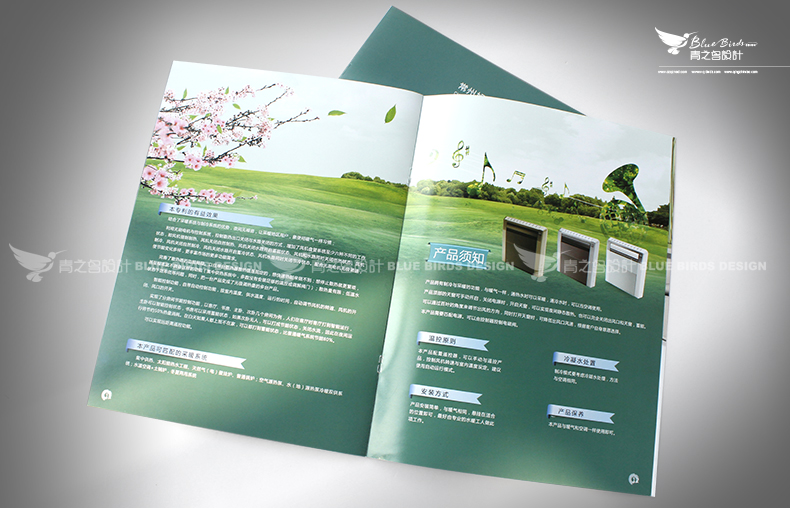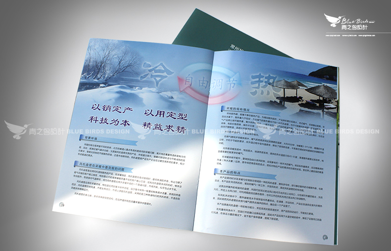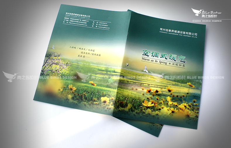 常州青之鳥廣告用“初夏秋冬”四個季節作為這份樣本的線索,結合優美的畫面設計,非常好地展示了旭春昇暖通設備的企業實力及產品優勢。
